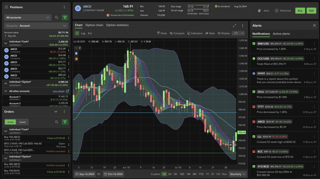 Trade confidently from your brokerage account with consistent real-time data, customized alerts, and efficient active-trading tools in our most powerful platforms yet—synced across your devices and powered by cutting-edge technology so you never miss a move.